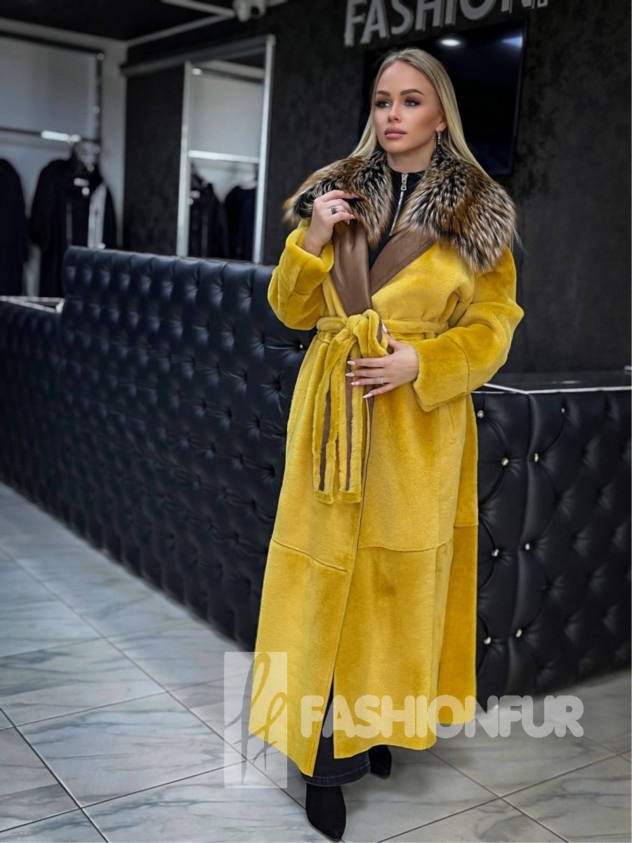 Дубленка, с мехом из чернобурой лисы
